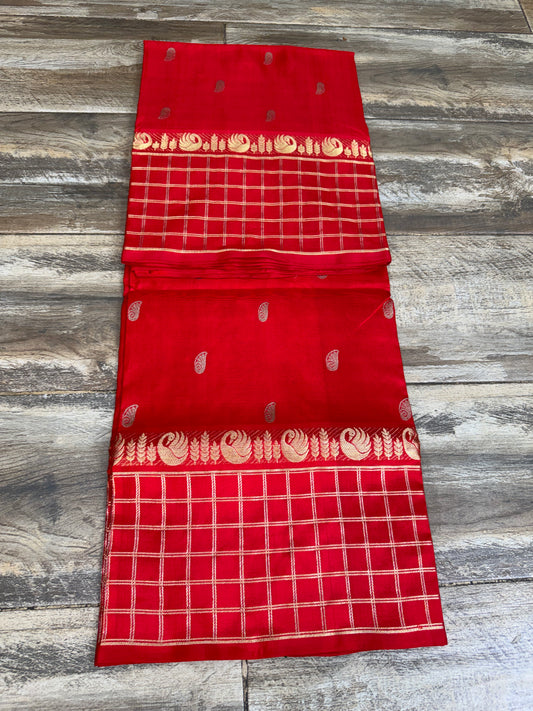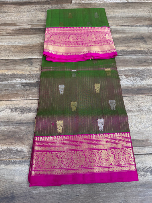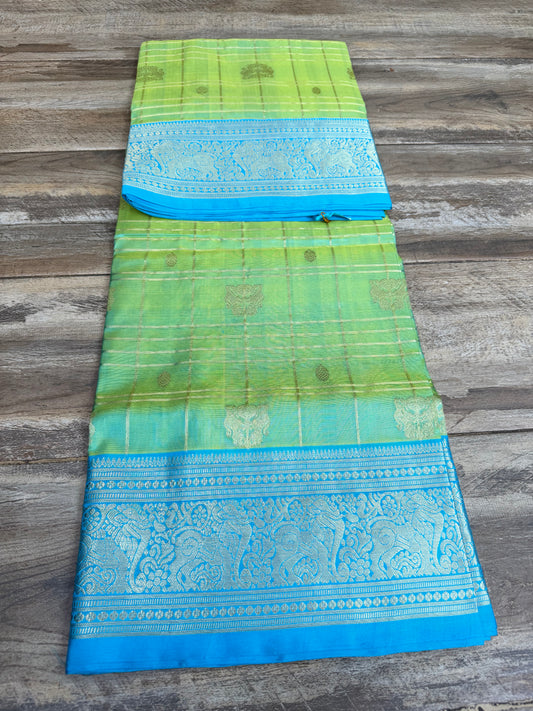 Hand woven pure silk venkatagiri sarees comes with silkmark certification. All the pictures are taken in natural light. But there might be variation of colours because of the camera and...