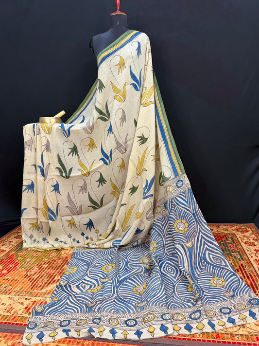 Our most loved pen Kalamkari saree collection on pure silk cottonsMaterial: SilkcottonBlouse : YESAs these are hand painted any variations in the design is considered as the uniqueness of the...