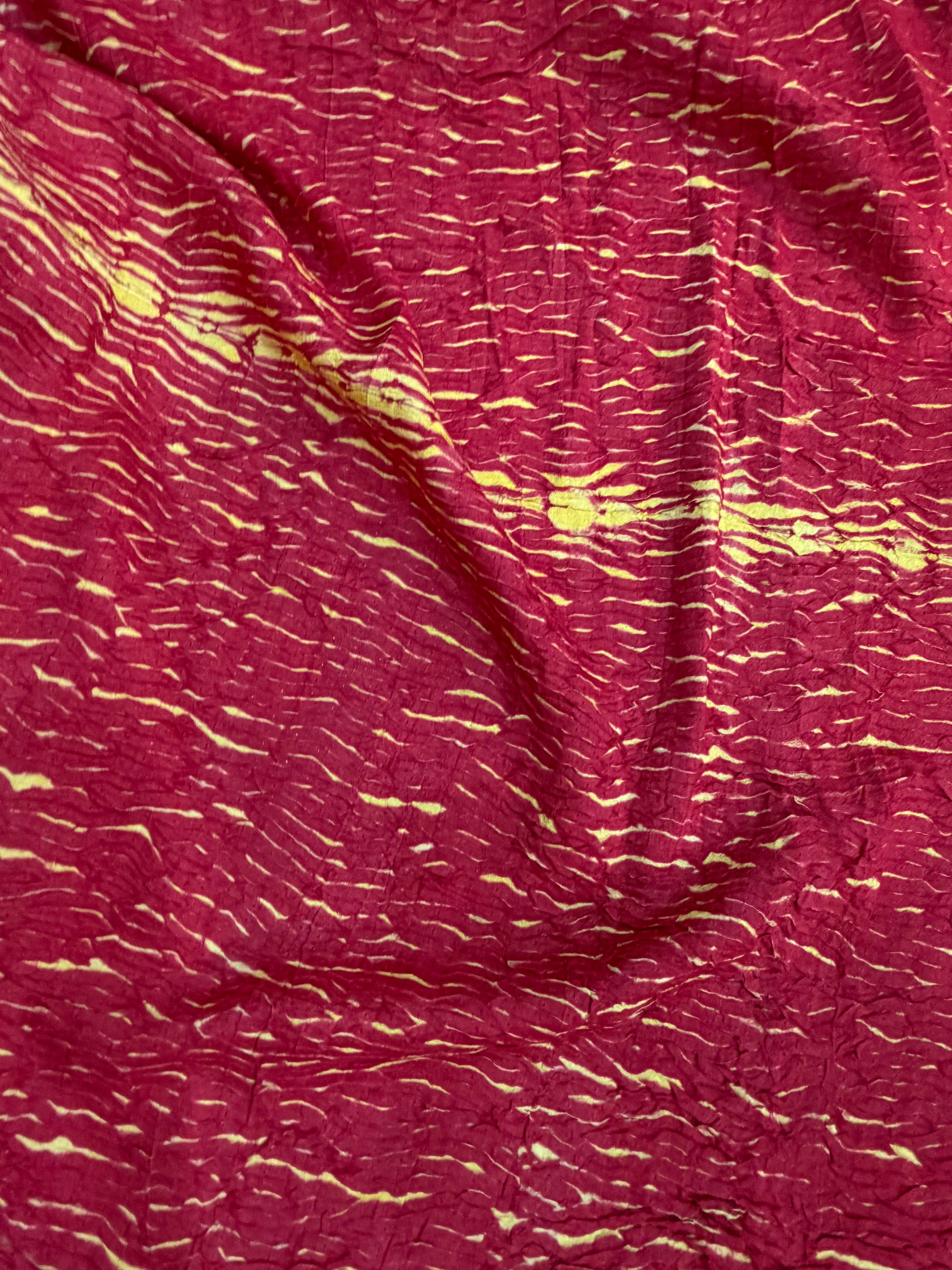 This masterpiece combines the elegance of tussar georgette fabric with the uniqueness of needle shibori art.
