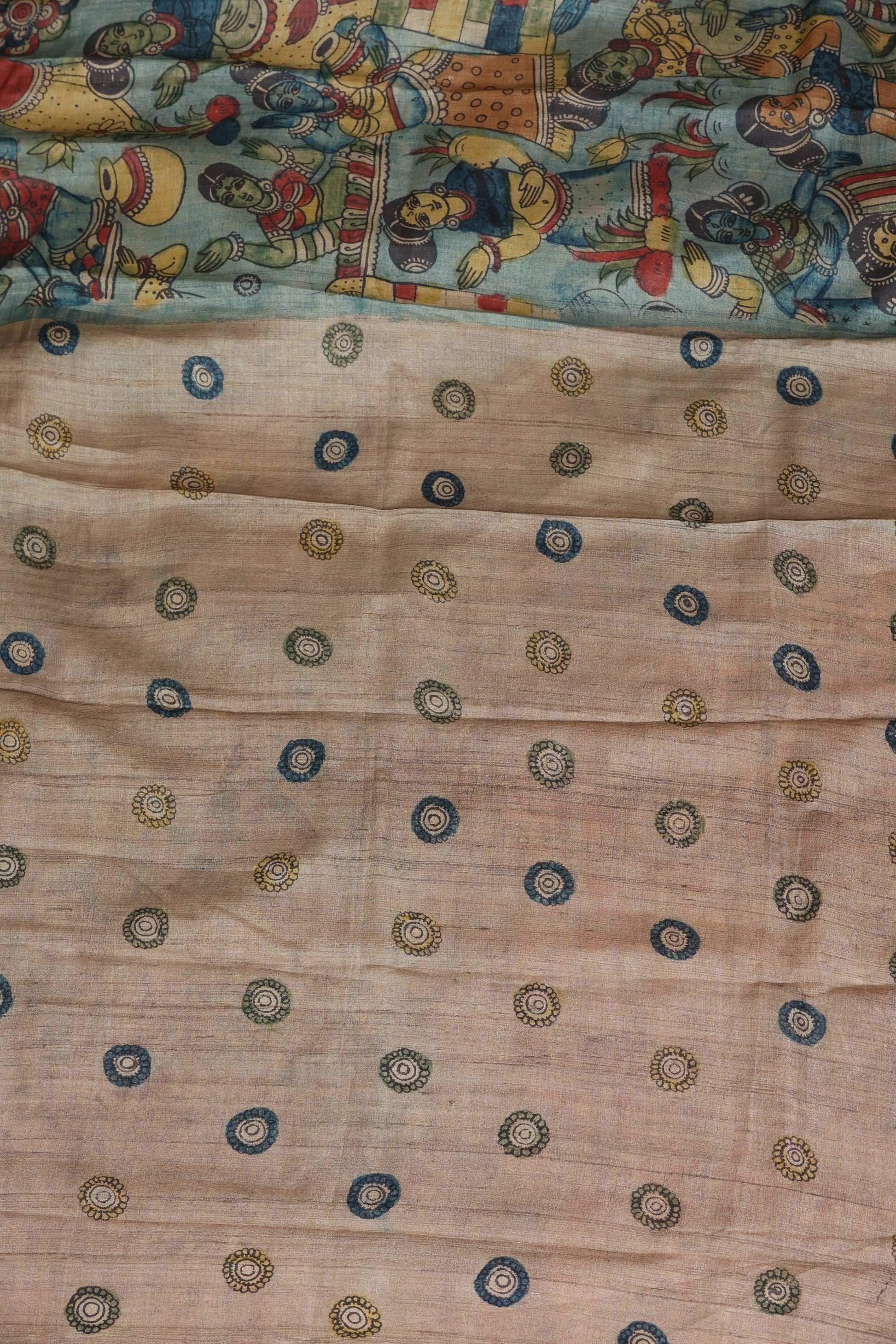Puresilk tussar with penkalamkari