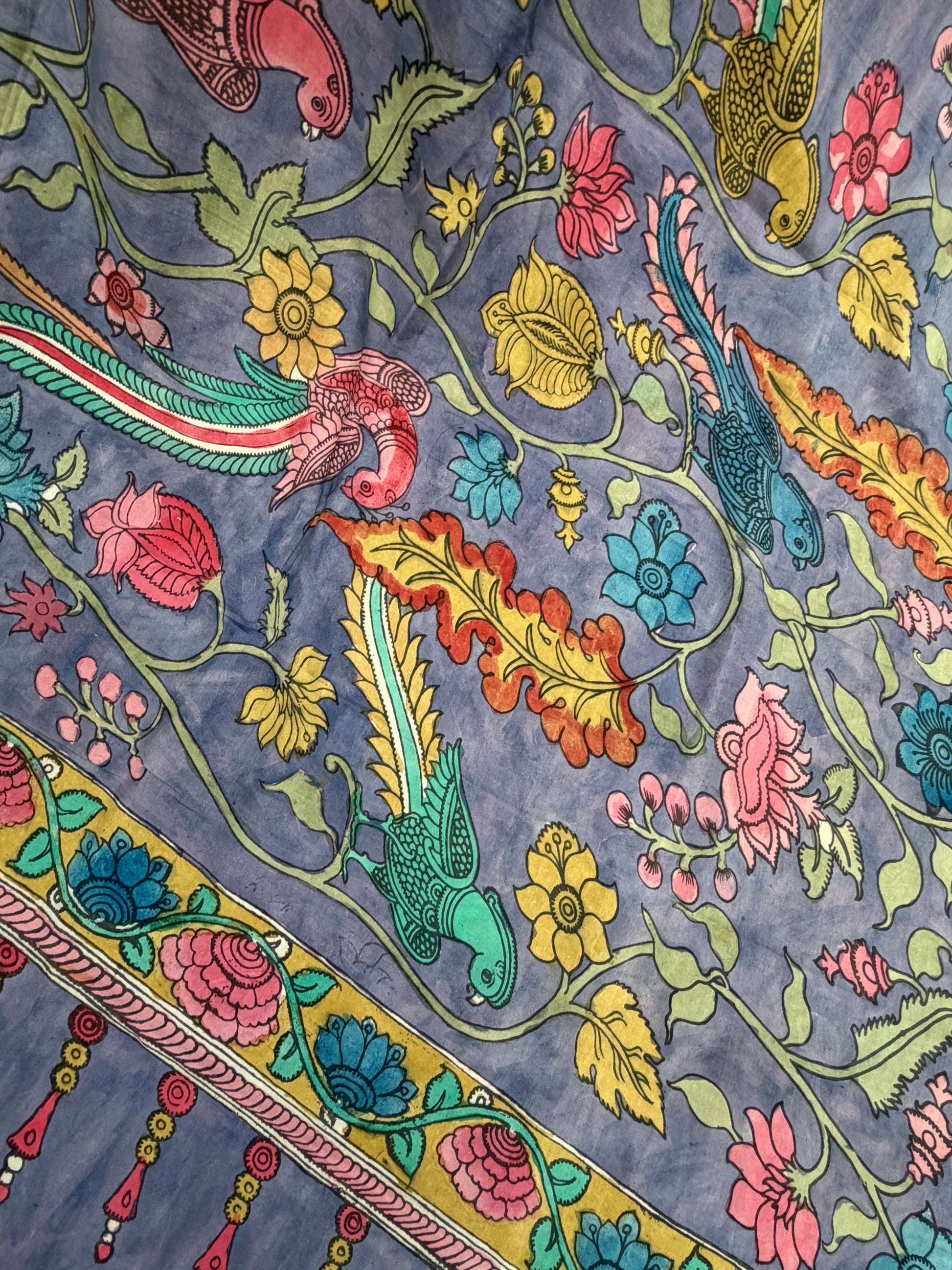 STORAGE: As we treat the matter with milk before kalamkari process it has an inherent smell. If you want to reduce the smell please store in a white cotton cloth with a moisture absorbent and place a freshner wrapped in another cloth.