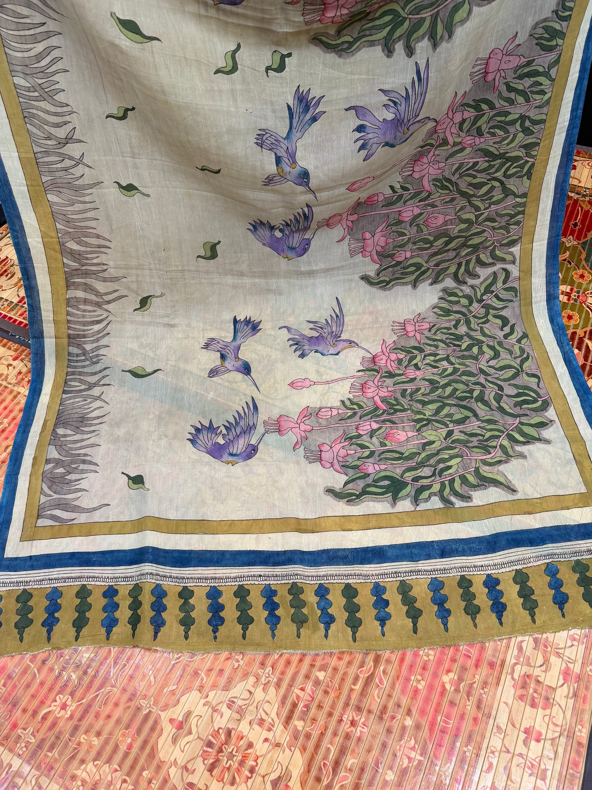 WASHCARE : As these are all hand painted with natural colours, they don’t react well with chemical detergents. So dry clean only.